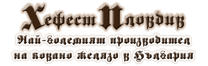 Хефест Пловдив е най-големия вносител и производител на ковано желязо в България Продуктовата гама изделия и елементи от ковано желязо на фабрика Хефест съдържа кован метал, върхове, розетки, листа, цветя, елементи за вграждане, обков и дръжки, декоративни елементи, отливки, щамповани елементи, топки, конуси, пирамиди, пана за вграждане, центри, както и градинска мебел, огради, парапети, решетки, врати, тенти, шатри и други. Използваните декоративни елементи от ковано желязо за изработка на тези метални изделия и конструкции, определят до ...