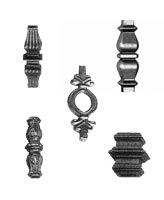Декоративните елементи за вграждане подчертават модерната и стилна линия на порталните врати, оградите, решетките и други изделия от кован метал. Те са ковани и отляти елементи от стомана, лесно заваряеми.